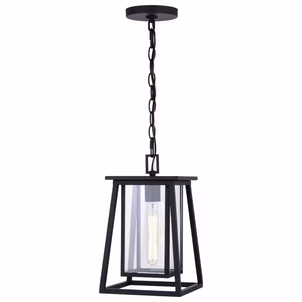 VAXCEL Blackwell Cage Frame 1-Light Black Outdoor Pendant Lantern Clear Glass