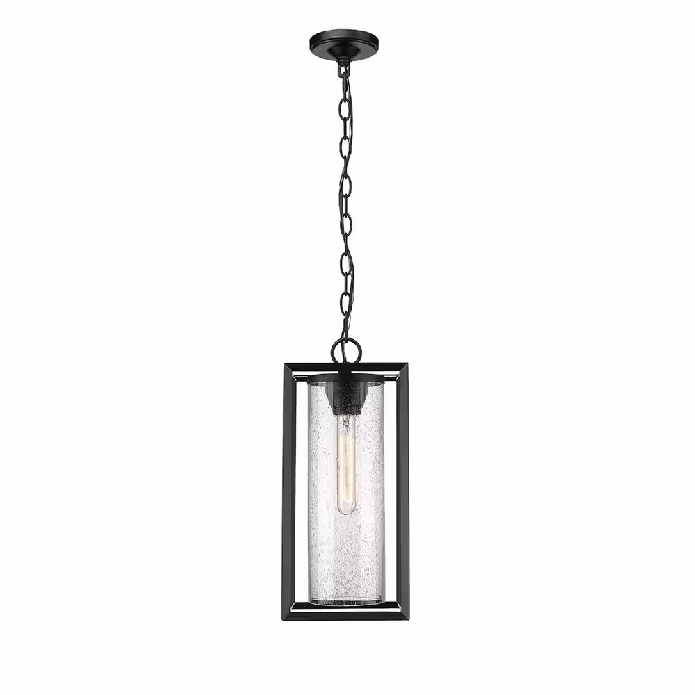Uolfin Modern Farmhouse Black Metal Outdoor Hanging Lights, 1-Light Industrial Outdoor Pendant Light with Clear Glass Shade