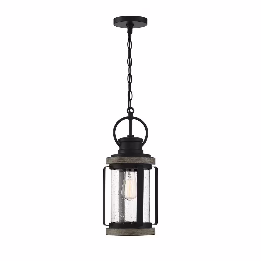 Savoy House Parker 8.5 in. W x 19.75 in. H 1-Light Lodge Outdoor Hanging Lantern with Clear Seeded Glass Shade