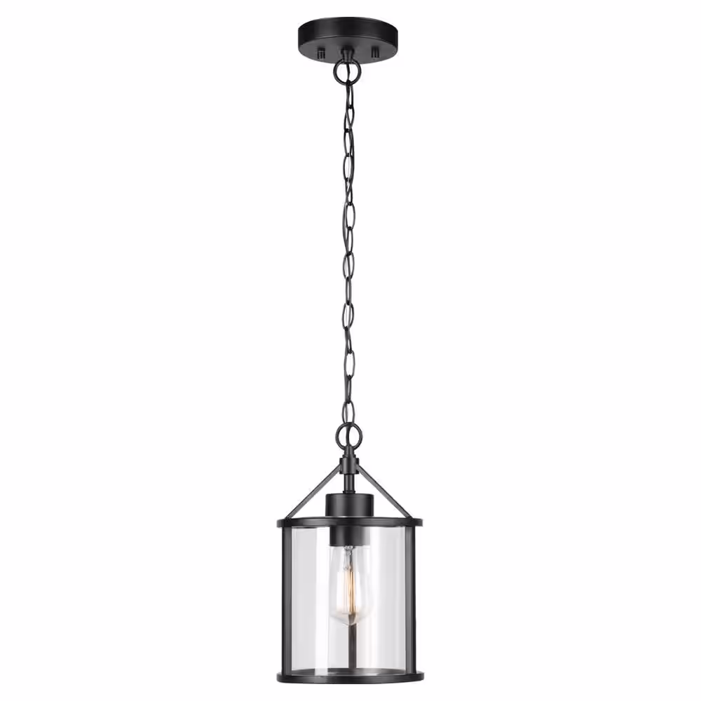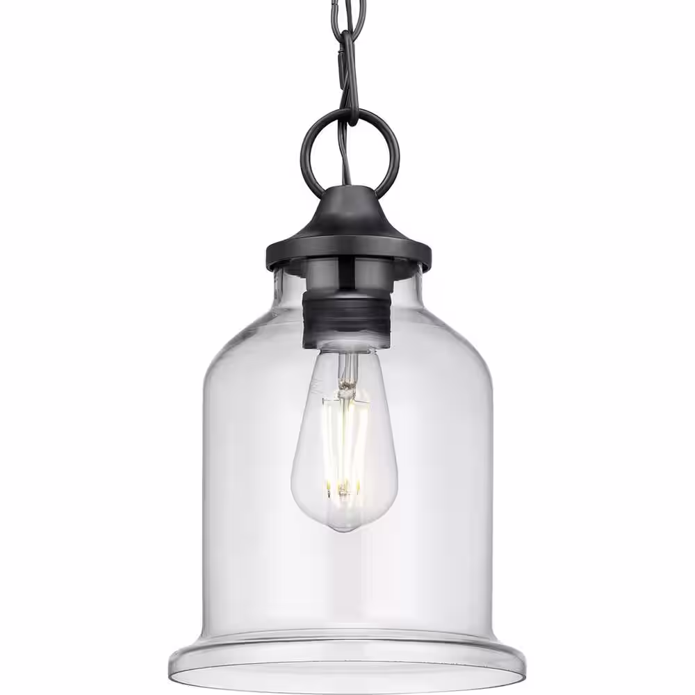 Globe Electric 1-Light Black Outdoor Indoor Pendant with Clear Glass Shade, Vintage Incandescent Bulb Included