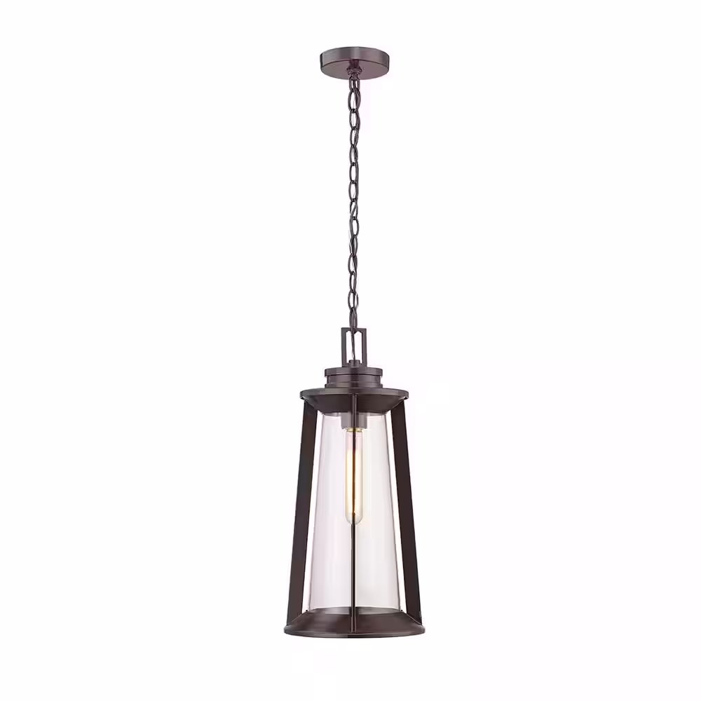 KICHLER Madison 1-Light Tannery Bronze Outdoor Porch Hanging Pendant Light with Clear Beveled Glass (1-Pack)