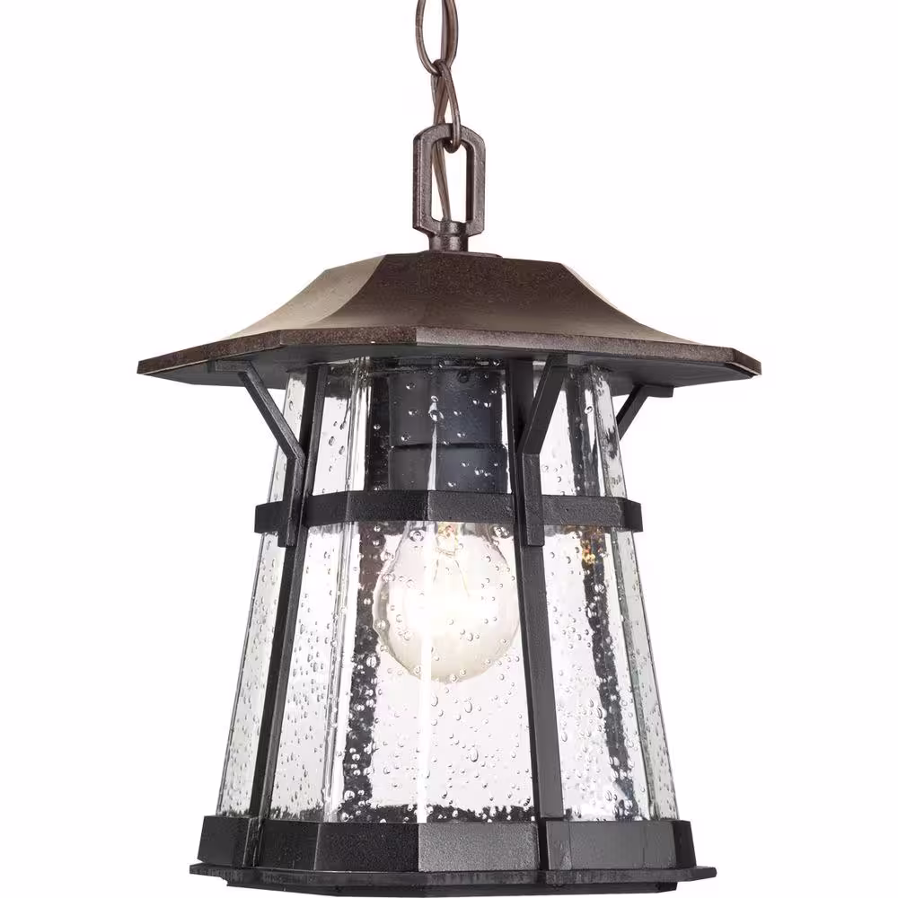 Progress Lighting Derby Collection 1-Light Espresso Clear Seeded Glass Craftsman Outdoor Hanging Lantern Light