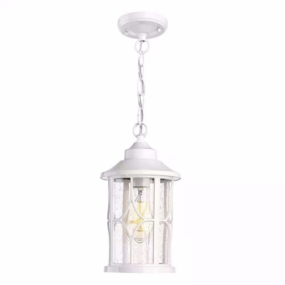 None 12 In.1-Light White Outdoor Aluminum Exterior Pendant Light Hanging Porch Light with Seeded Glass