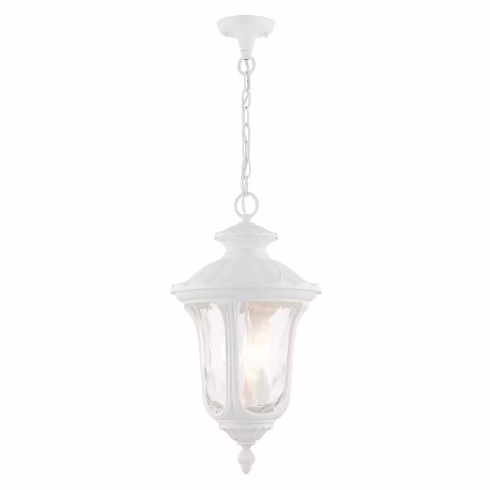 Livex Lighting Oxford 3-Light Textured White Outdoor Pendant Light with Clear Water Glass