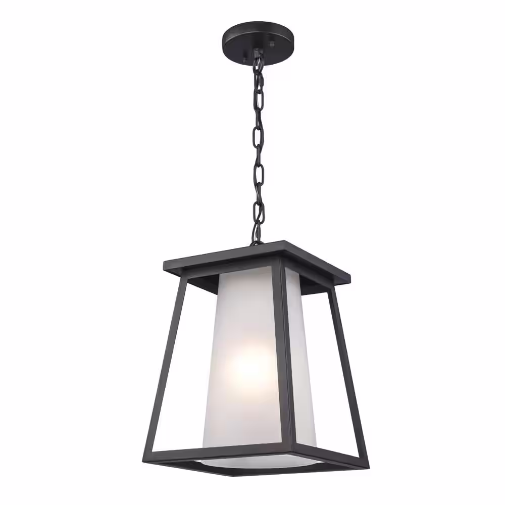 Bel Air Lighting Kingsbury 1-Light Black Hanging Outdoor Pendant Light Fixture with Frosted Glass