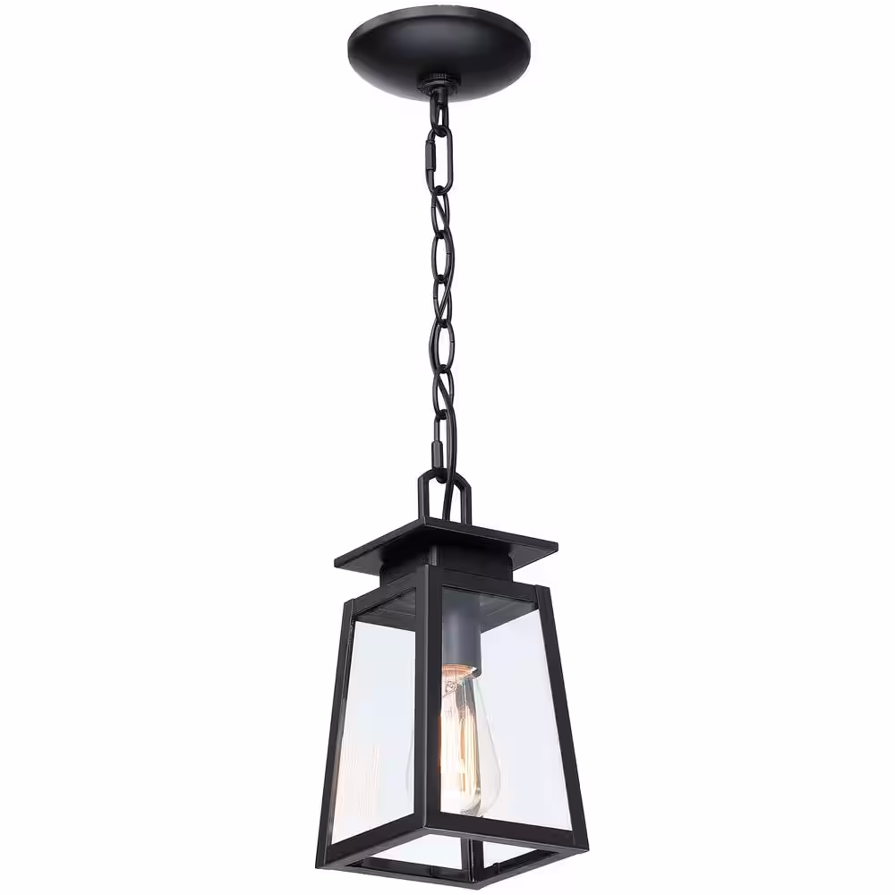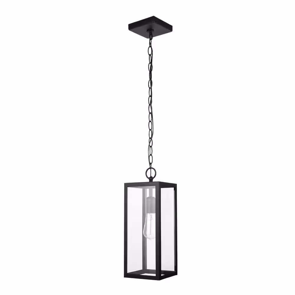 Globe Electric Bowery 1-Light Matte Black Outdoor/Indoor Pendant Light with Clear Glass Shade