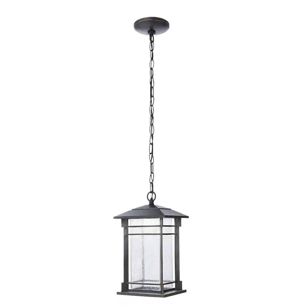 Home Decorators Collection Oil Rubbed Bronze LED Outdoor Pendant Light Fixture with Seeded Glass