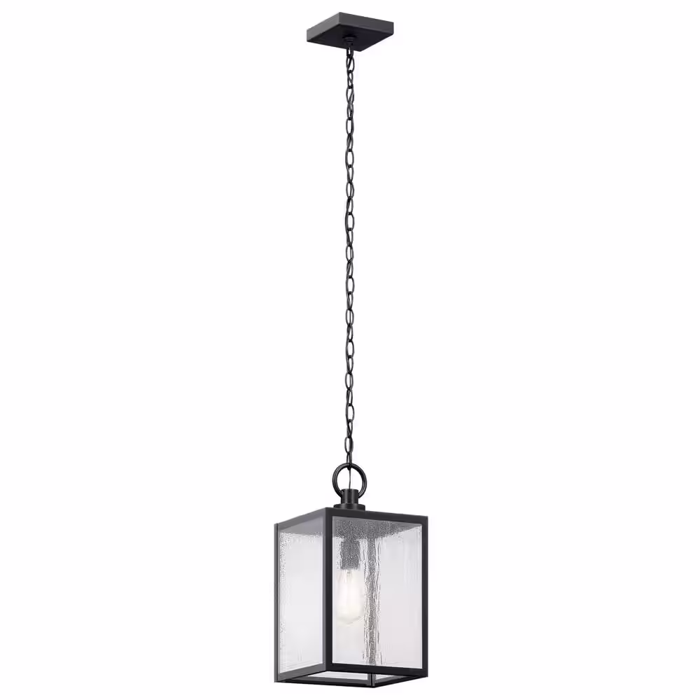 KICHLER Lahden 17.25 in. 1-Light Textured Black Outdoor Convertible Hanging Pendant Light with Clear Seeded Glass (1-Pack)