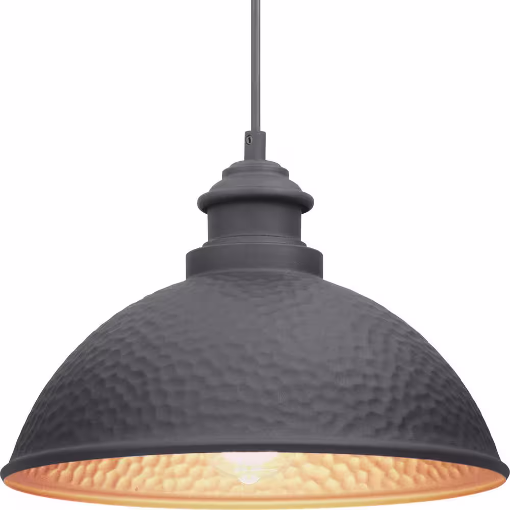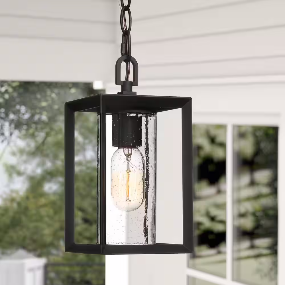 Globe Electric Augusta 1-Light Matte Black Outdoor Indoor Pendant Lighting with Seeded Glass Shade