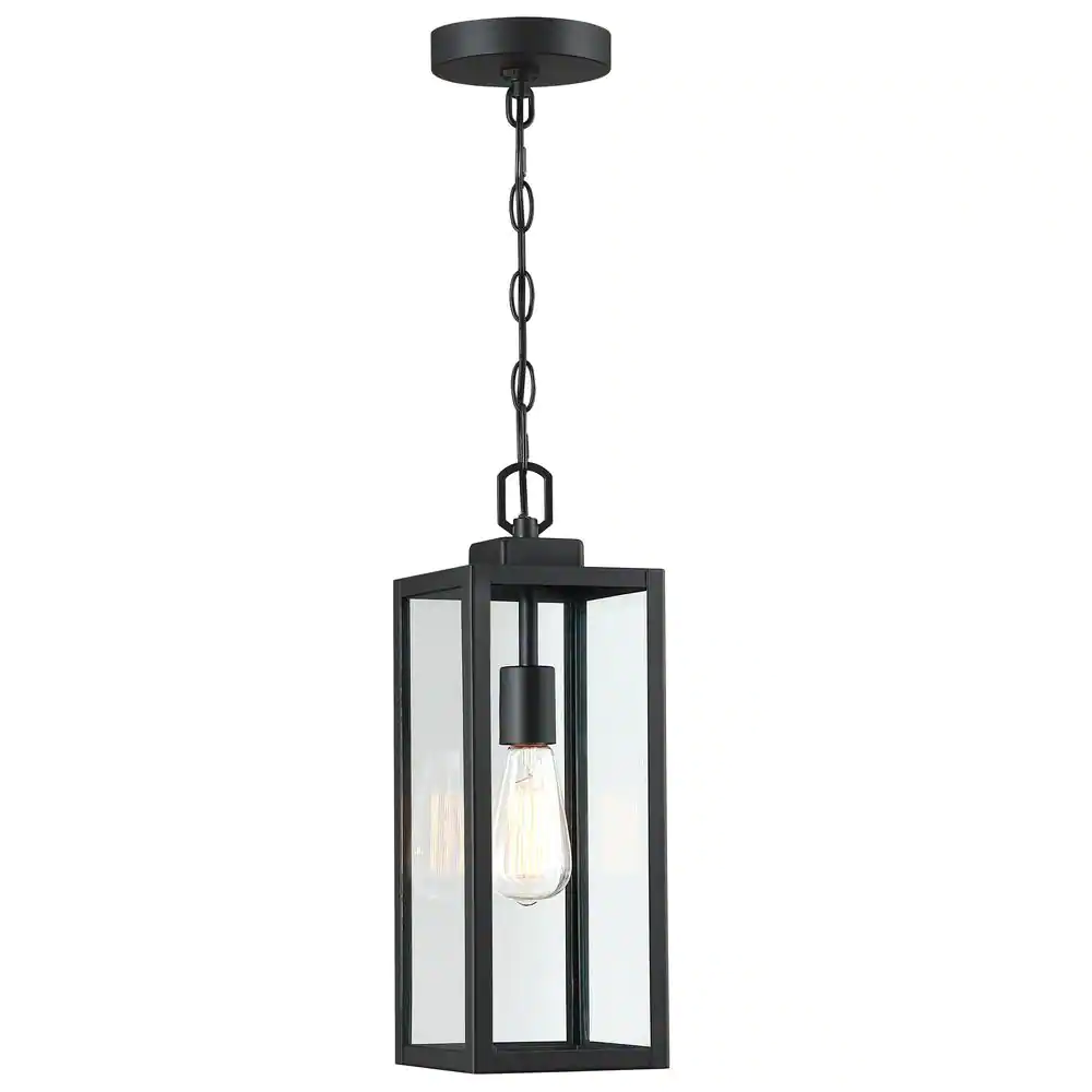 Pia Ricco 1-Light Matte Black Outdoor Pendant Light with Clear Glass