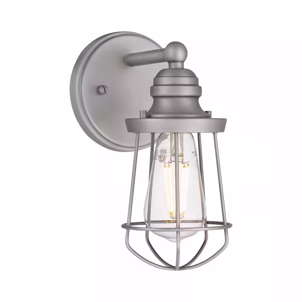 Hampton Bay Southbourne 1-Light Antique Nickel Wall Sconce with Open Steel Cage Frame