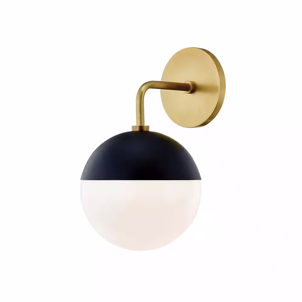 MITZI HUDSON VALLEY LIGHTING Renee 1-Light Aged Brass/Black Wall Sconce with Opal Glossy Shade