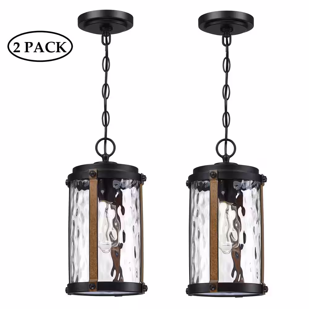 Hukoro 14 in. H 1-Light Barnwood Accents and Matte Black Outdoor Hanging Lantern Pendant (2-Pack)