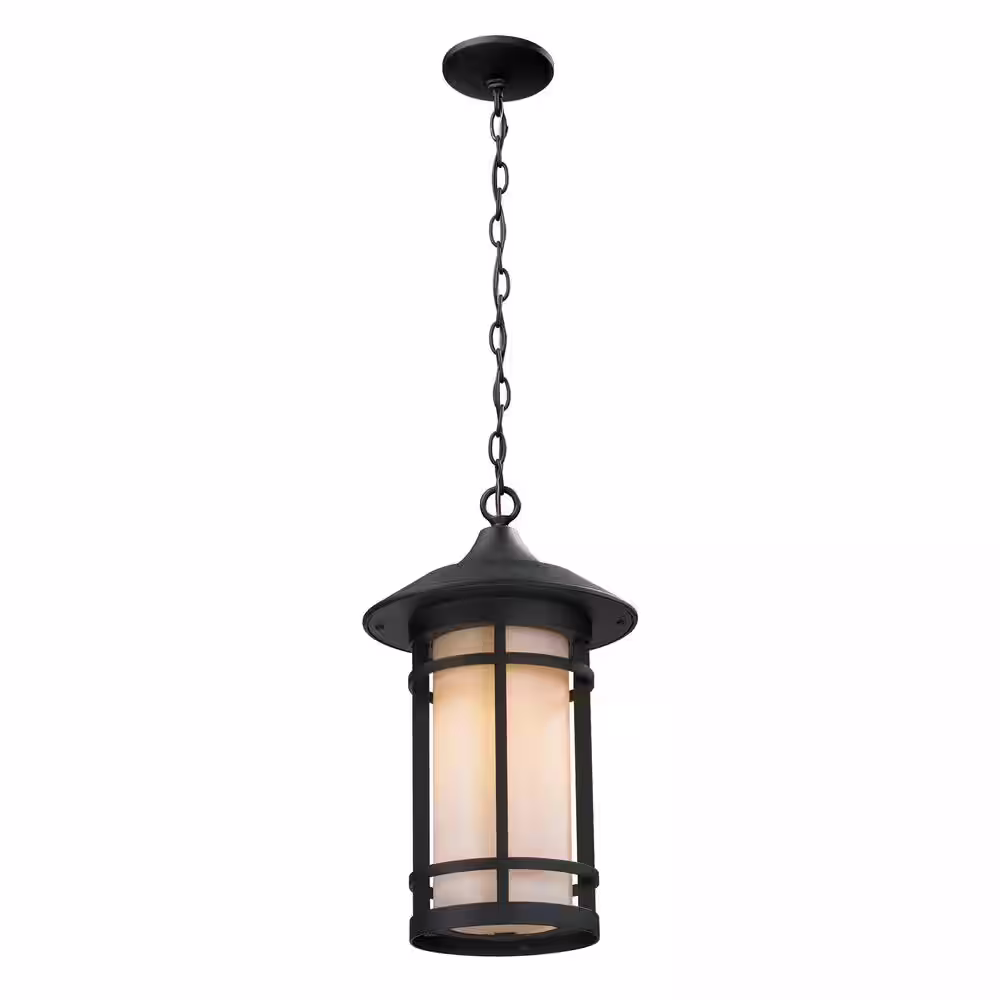 None Woodland 17.12 in. 1-Light Black Outdoor Hardwired Weather Resistant Pendant Light with No Bulbs Included