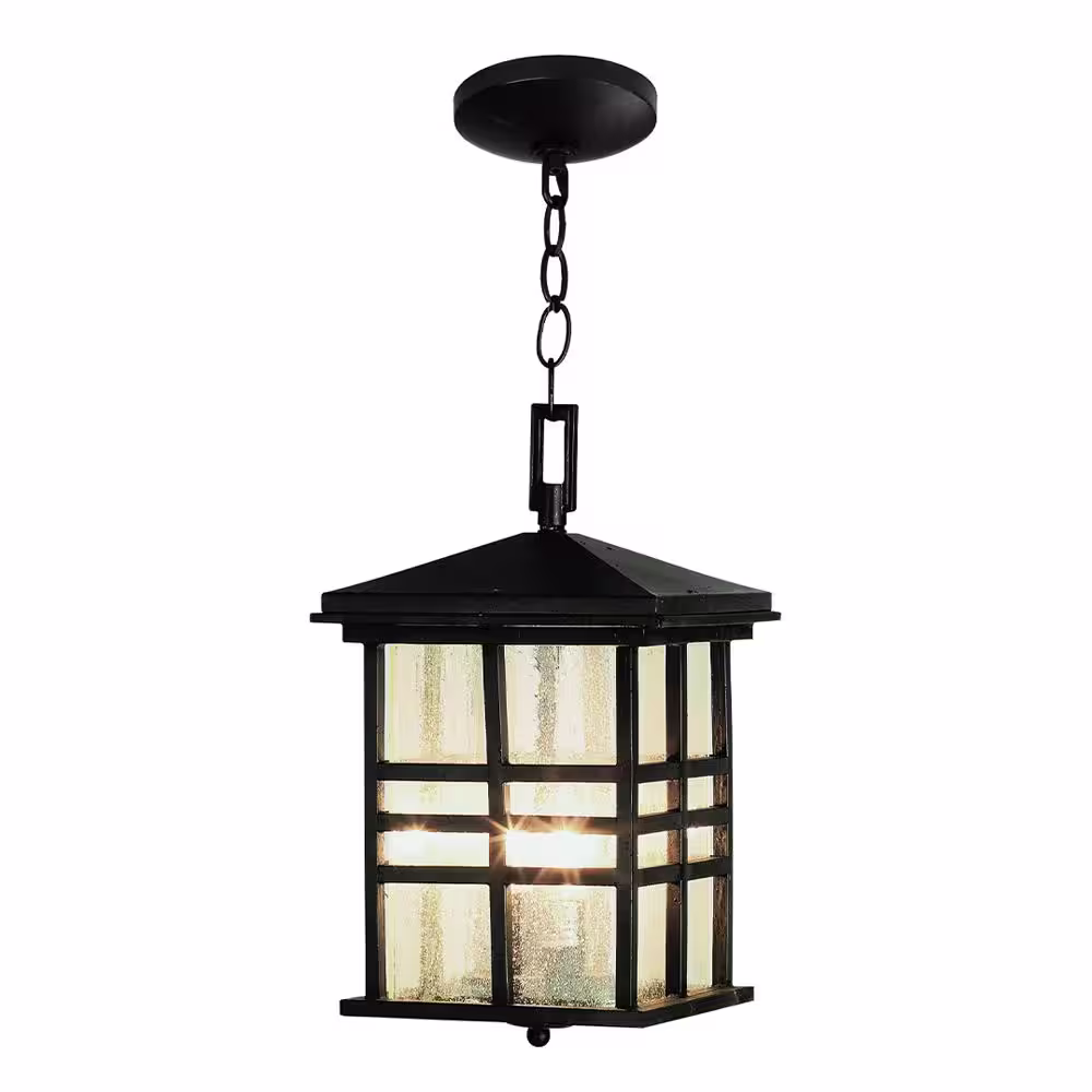 Bel Air Lighting Huntington 2-Light Black Hanging Outdoor Pendant Light Fixture with Seeded Glass