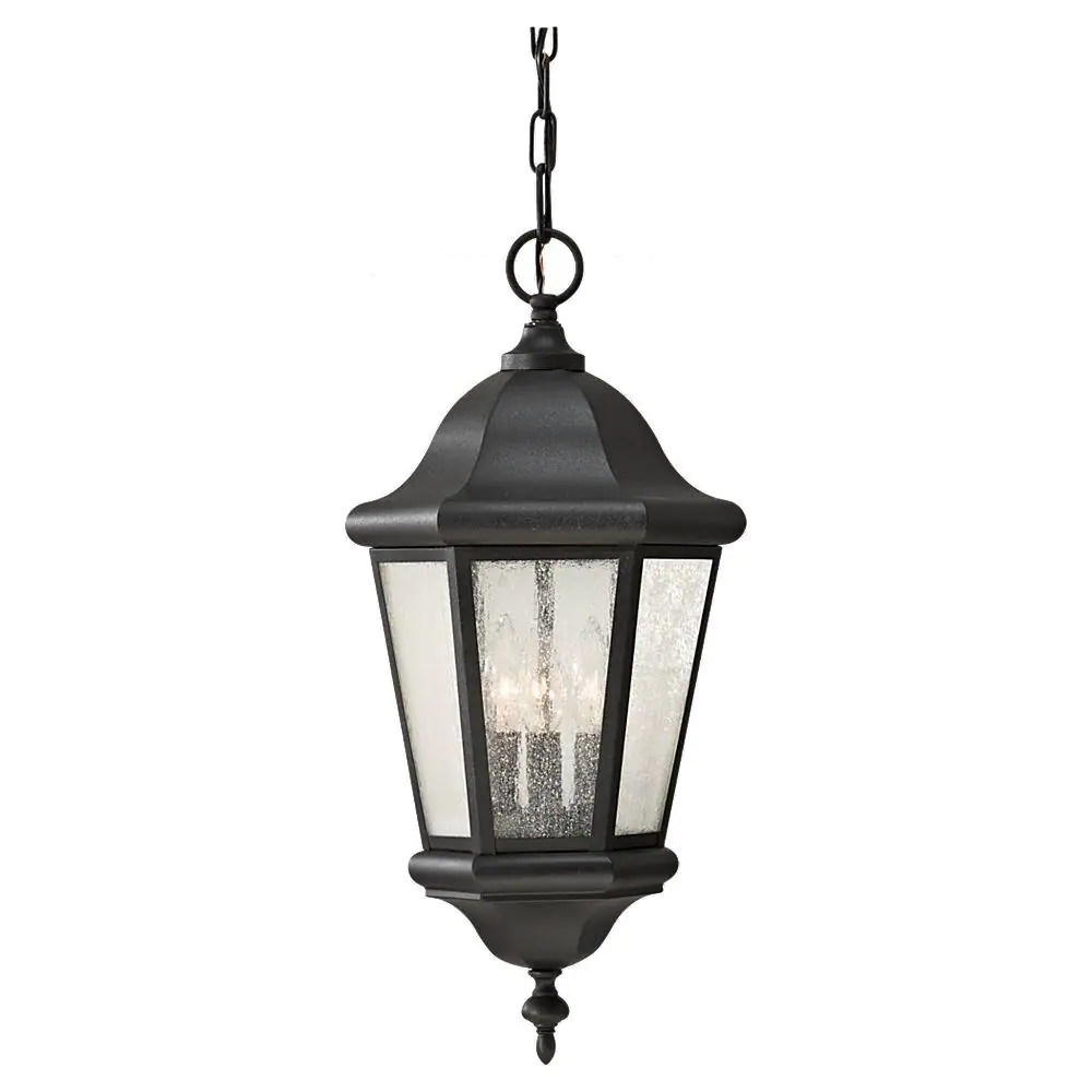 Generation Lighting Martinsville 10.25 in. W. 3-Light Black Outdoor Pendant with Clear Seeded Glass Panels