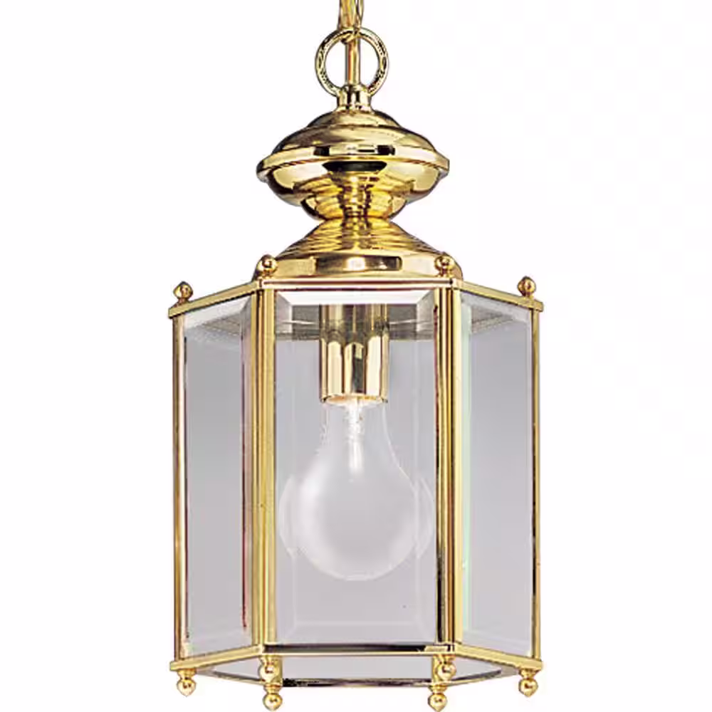Progress Lighting 1-Light Polished Brass Clear Beveled Glass Traditional Outdoor Hanging or Flush mount Convertible Lantern Light