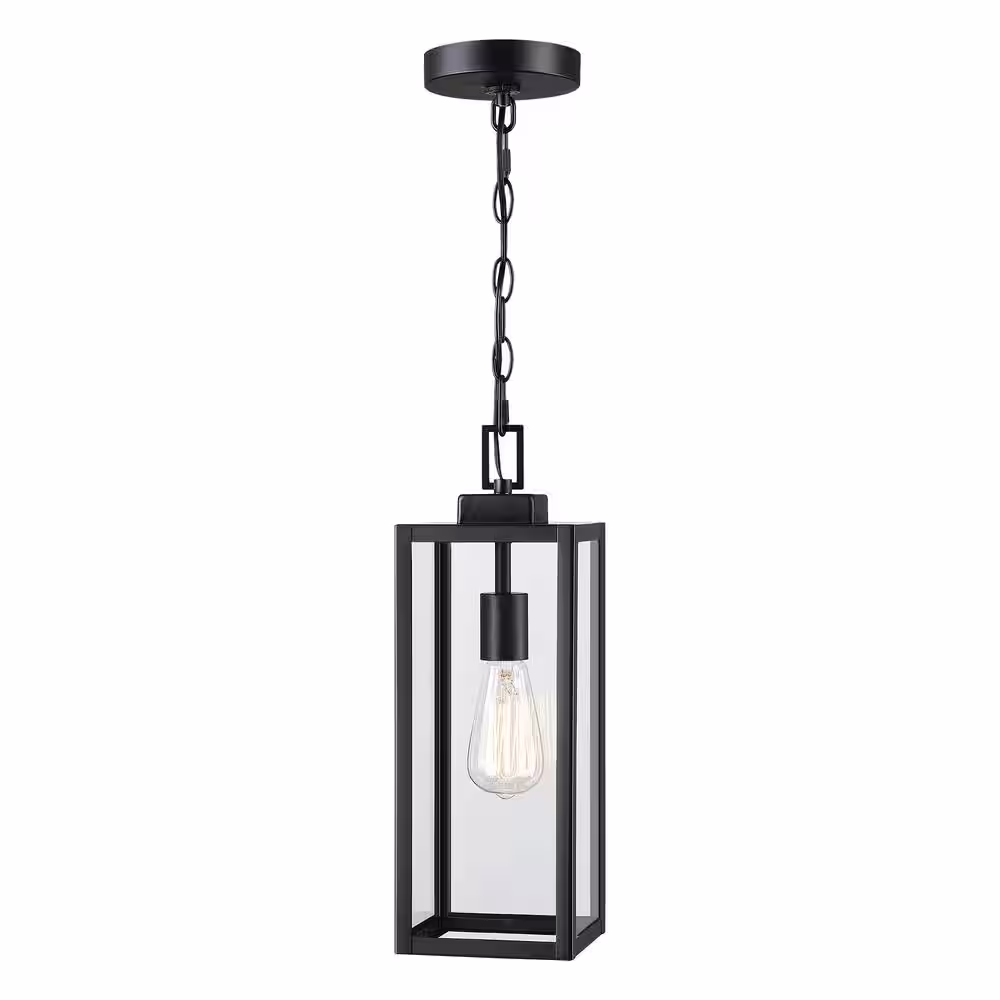 Hukoro 17 in. H 1-Light Matte Black Outdoor Hanging Lantern Pendant