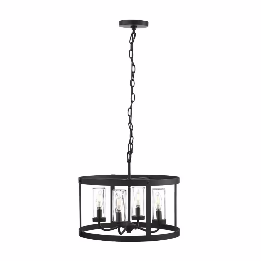 Home Decorators Collection Rockwell 4-Light Matte Black Outdoor Pendant Light with Clear Glass Shades