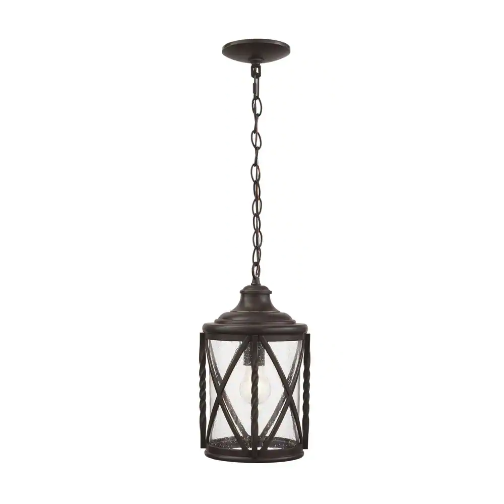 Home Decorators Collection Walcott Manor 14.12 in. 1-Light Antique Bronze Outdoor Transitional Pendant Light with Clear Seeded Glass