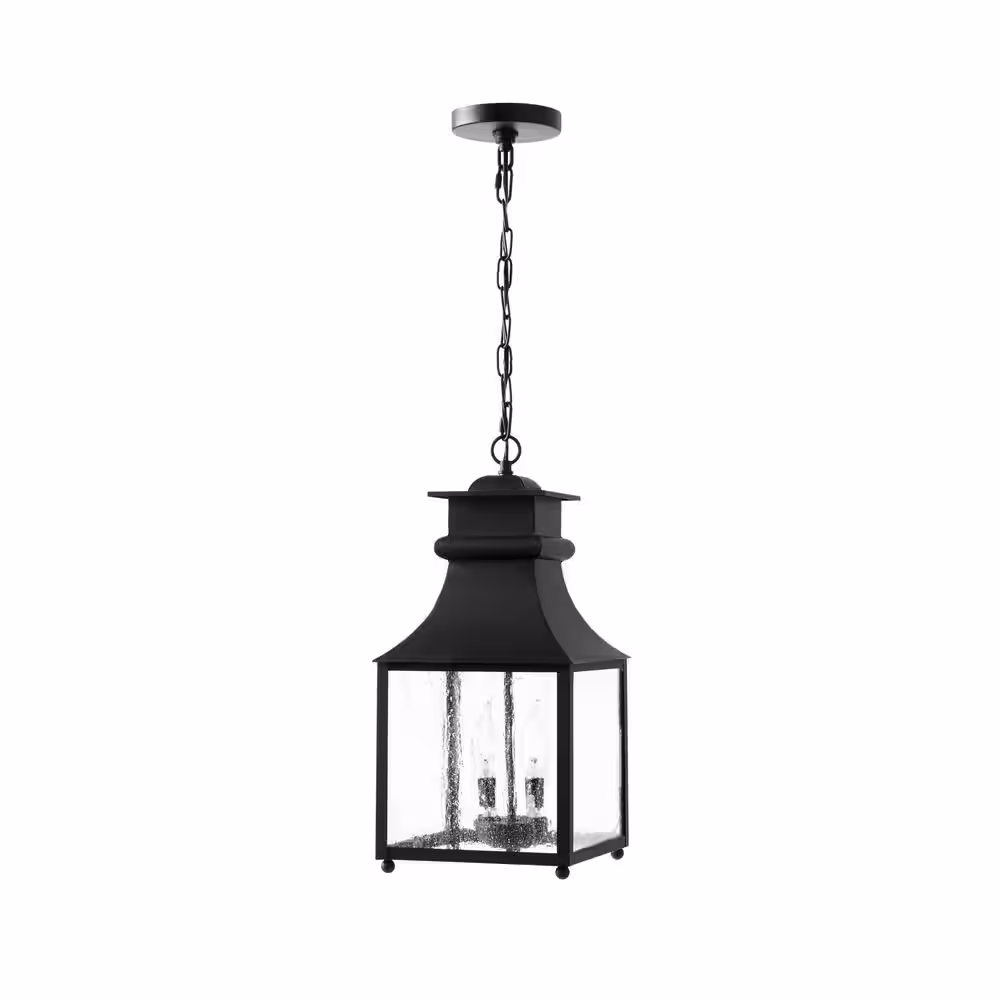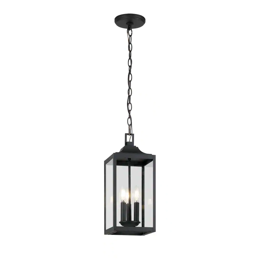 Home Decorators Collection Havenridge 3-Light Matte Black Outdoor Hanging Pendant Light with Clear Glass (1-Pack)