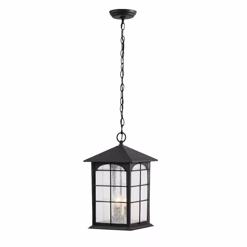 Hampton Bay Hurley Modern 1-Light Matte Black Hardwired Outdoor Hanging Pendant Light