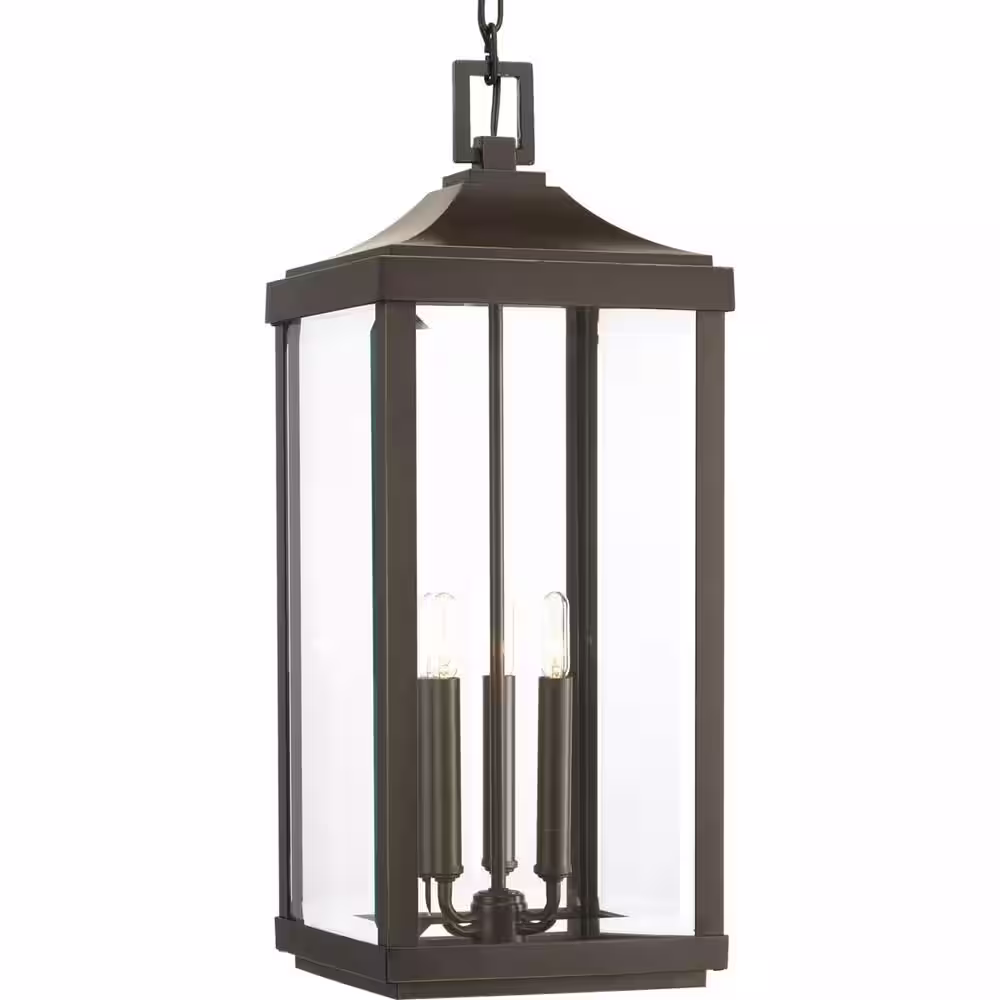 Progress Lighting Gibbes Street Collection 3-Light Antique Bronze Clear Beveled Glass New Traditional Outdoor Hanging Porch Lantern Light
