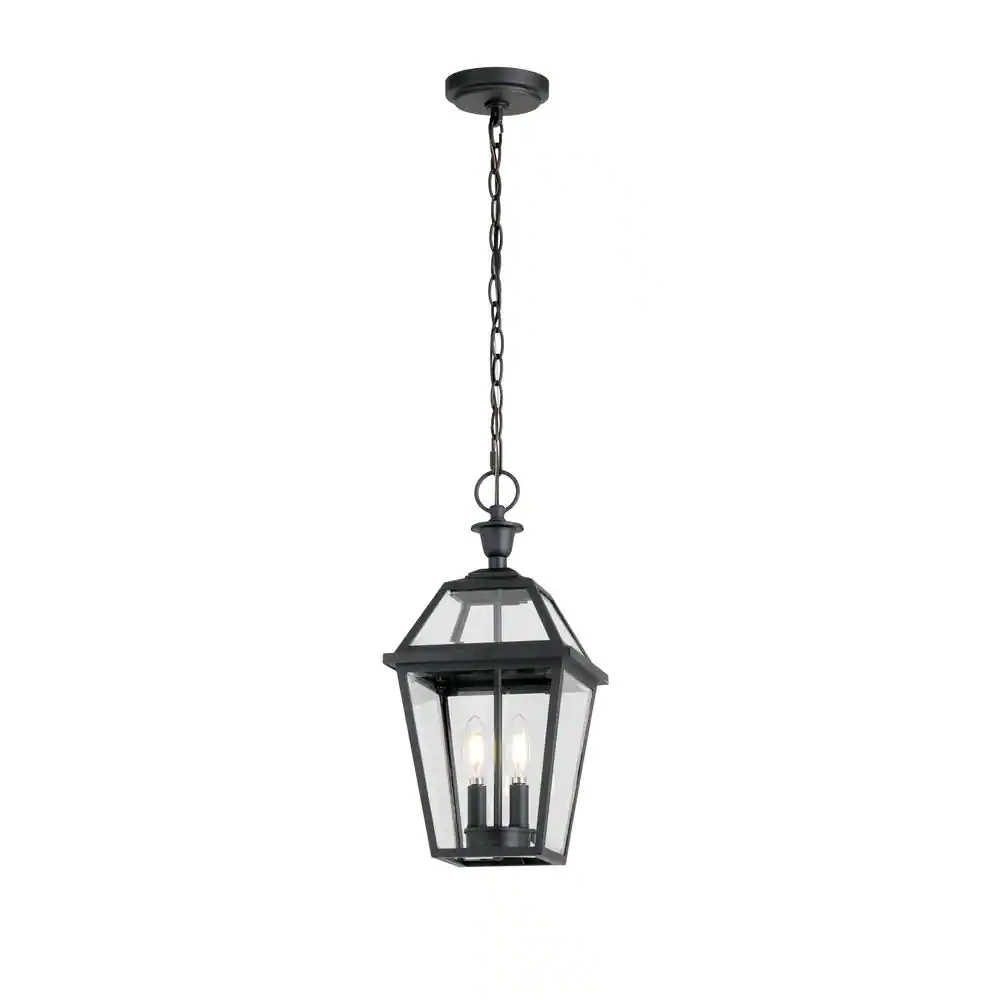 Home Decorators Collection Glenneyre 8-5/8 in. W 2-Light Matte Black French Quarter Gas Style Outdoor Hanging Pendant Light with Clear Glass