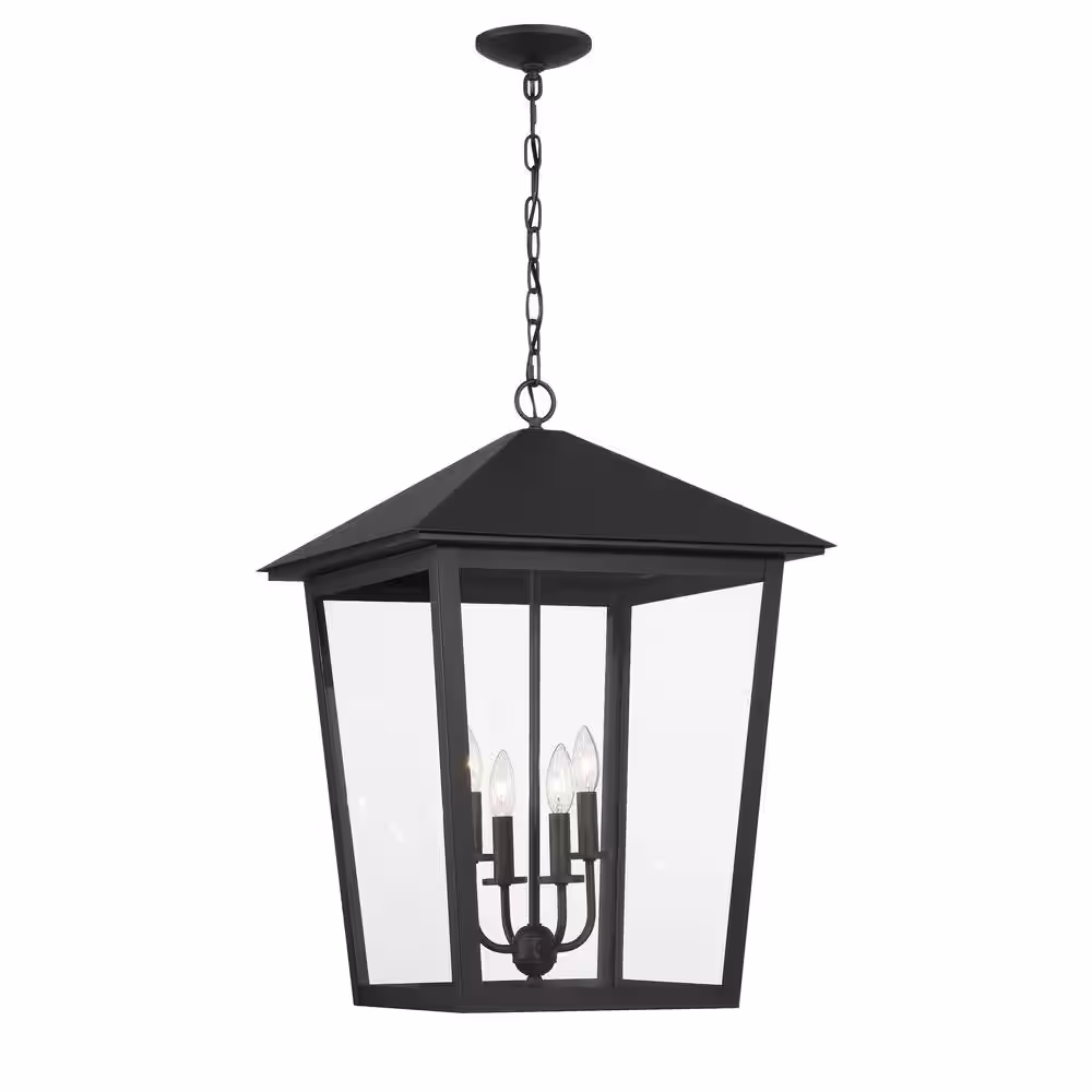 Minka Lavery Noble Hill 4-Light Black Outdoor Pendant Light with Clear Glass Shade