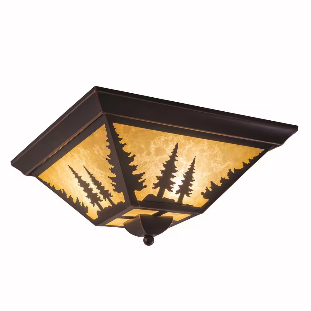 VAXCEL Yosemite Bronze Rustic Tree Square Indoor Outdoor Flush Mount 3-Light Ceiling Fixture