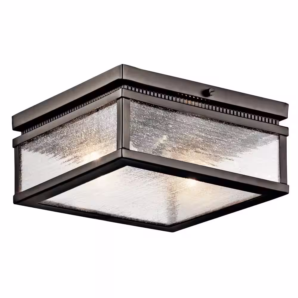 KICHLER Manningham 2-Light Olde Bronze Outdoor Porch Ceiling Flush Mount Light with Clear Seedy Glass (1-Pack)