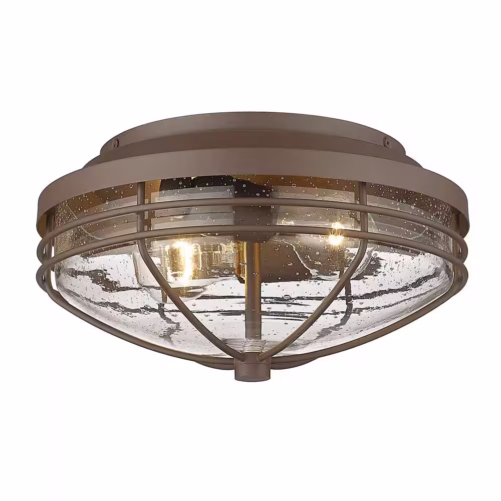 Golden Lighting Seaport 2-Light Textured Bronze Seeded Glass Outdoor Flushmount