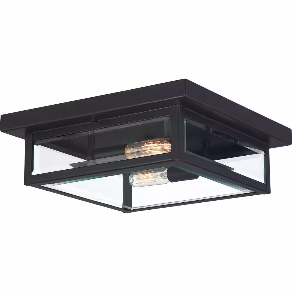 Generation Lighting Hunnington 10 in. W. Black 2-Light Outdoor Flush Mount with LED Bulb