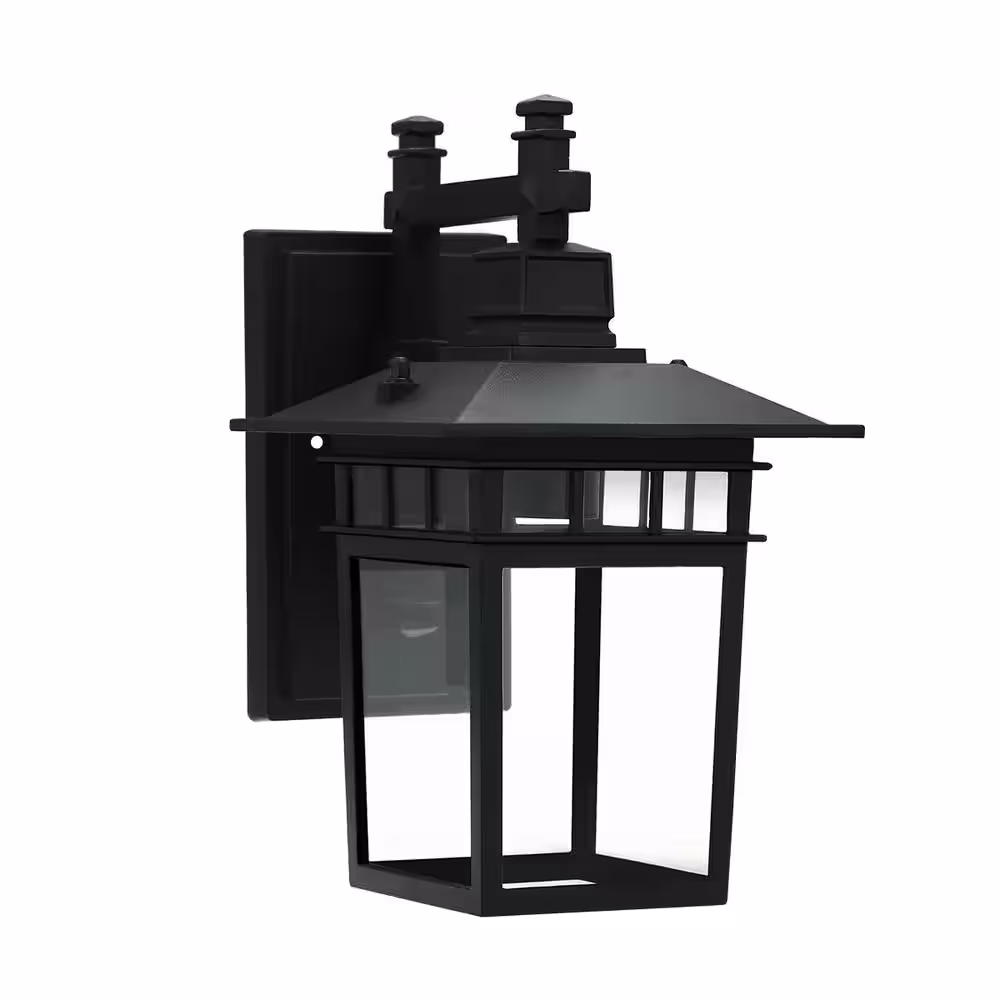 YANSUN 1-Light Black Waterproof Outdoor Porch Light Wall Lantern Sconce Light with Clear Glass Shade