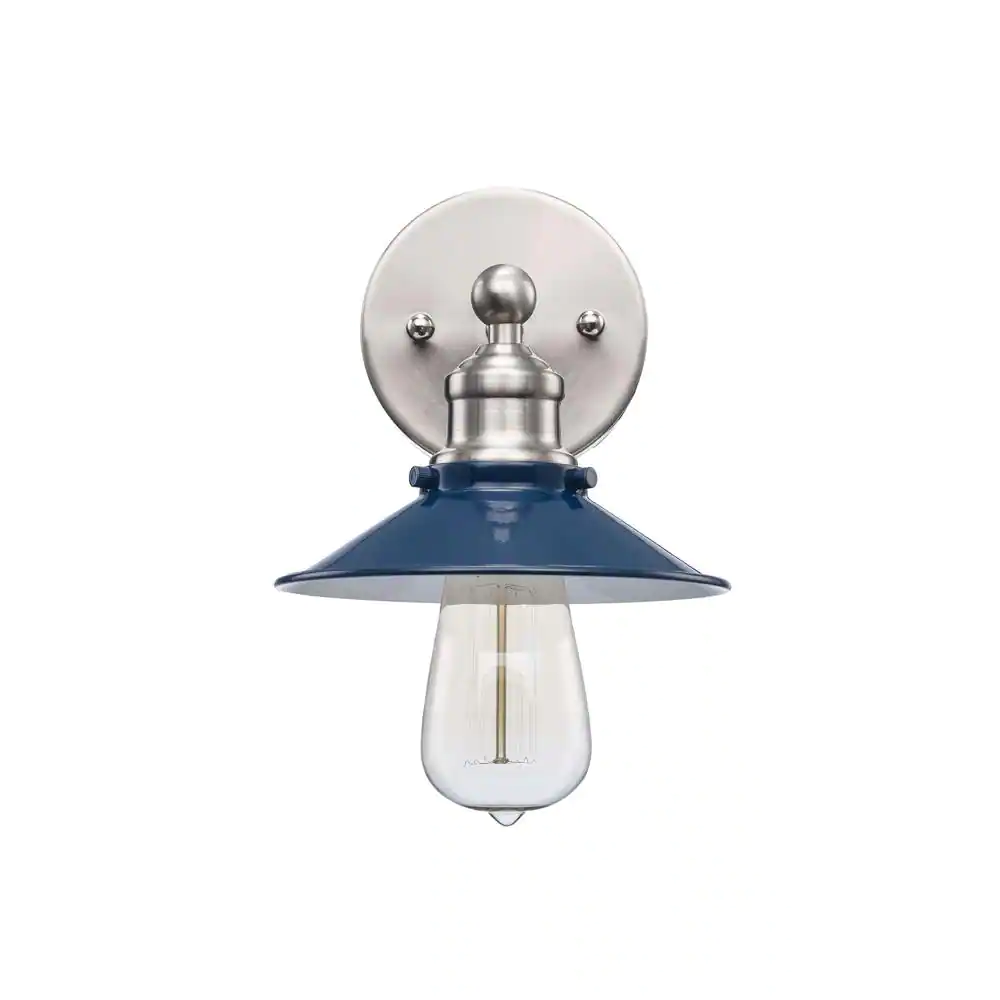 Hampton Bay Glenhurst 1-Light Cobalt and Brushed Nickel Industrial Farmhouse Indoor Wall Sconce Light Fixture with Metal Shade