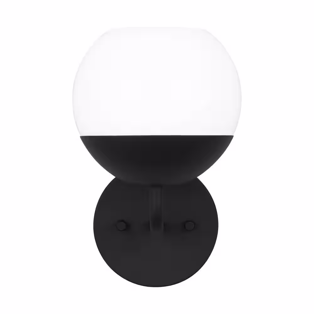 Generation Lighting Alvin 1-Light Midnight Black Wall Sconce with Milk Glass Shade