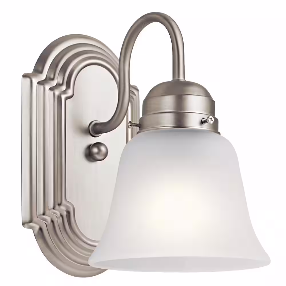 KICHLER Independence 1-Light Brushed Nickel Bathroom Indoor Wall Sconce Light with Satin Etched Glass Shade