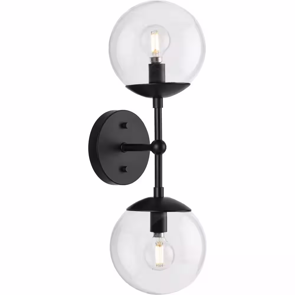Progress Lighting Atwell Collection 6 in. 2-Light Matte Black Mid-Century Modern Wall Sconce with Clear Glass Shade