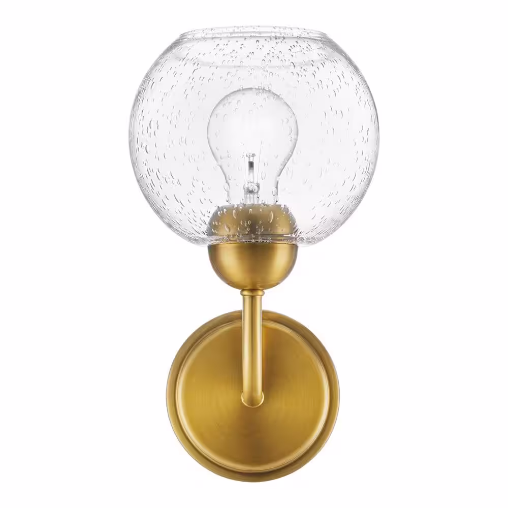 Home Decorators Collection Jill 1-Light Gold Wall Sconce with Clear Seeded Glass Shade