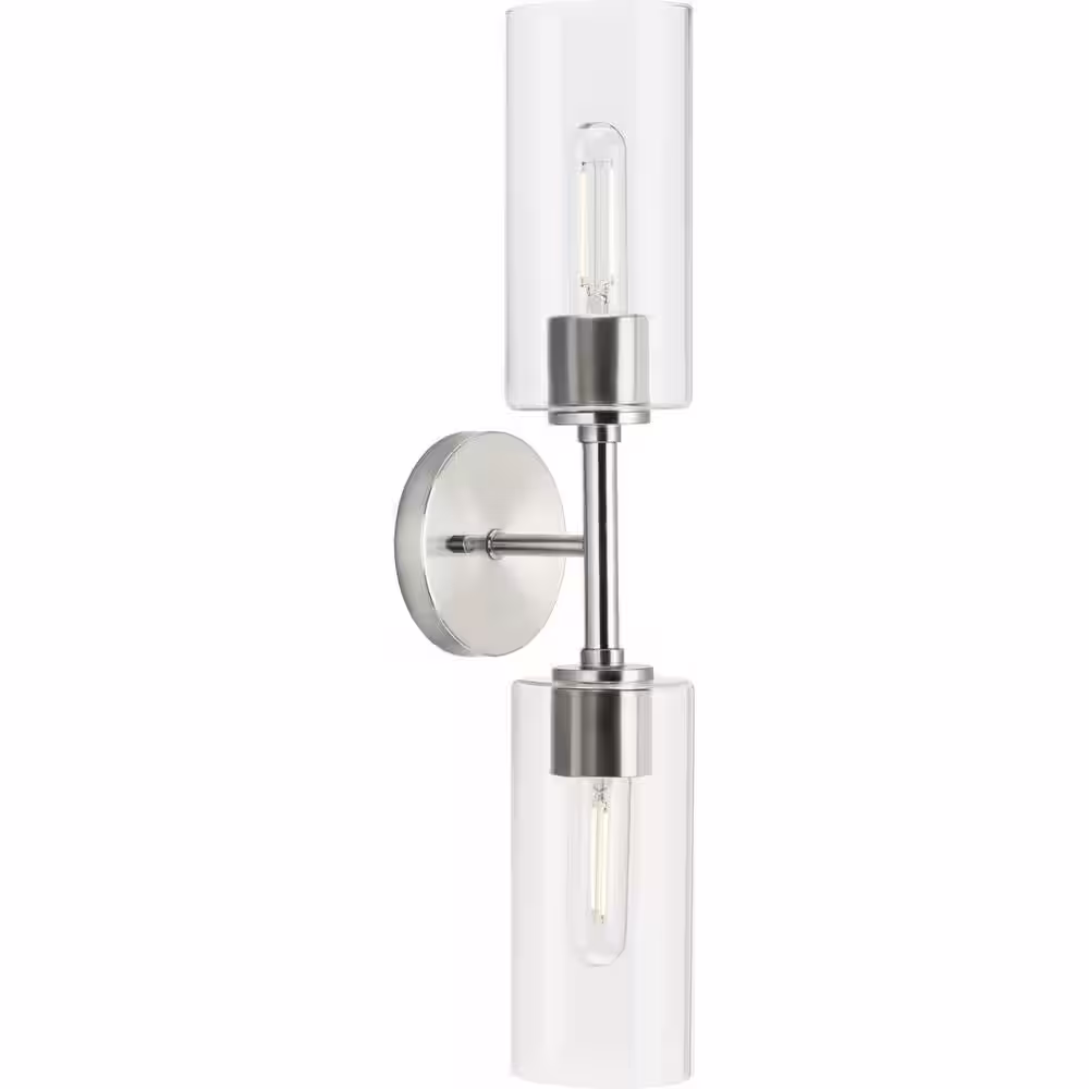 Progress Lighting Cofield Collection 22-1/2 in. 2-Light Brushed Nickel Transitional Wall Bracket with Clear Glass Shades