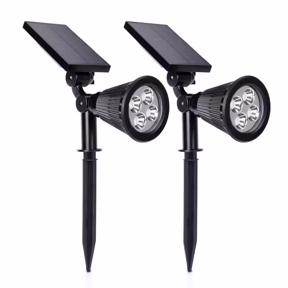 TECHKO Solar Spotlight 410 Lumens Black Battery Operated integrated LED Outdoor Spotlight with Adjustable Lamp Head (2-pack)