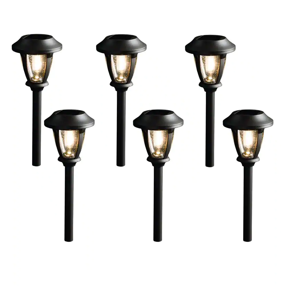 Hampton Bay Solar Bronze Outdoor Integrated LED 2700K 12-Lumens Vintage Bulb Seedy Glass Landscape Pathway Light Set (6-Pack)