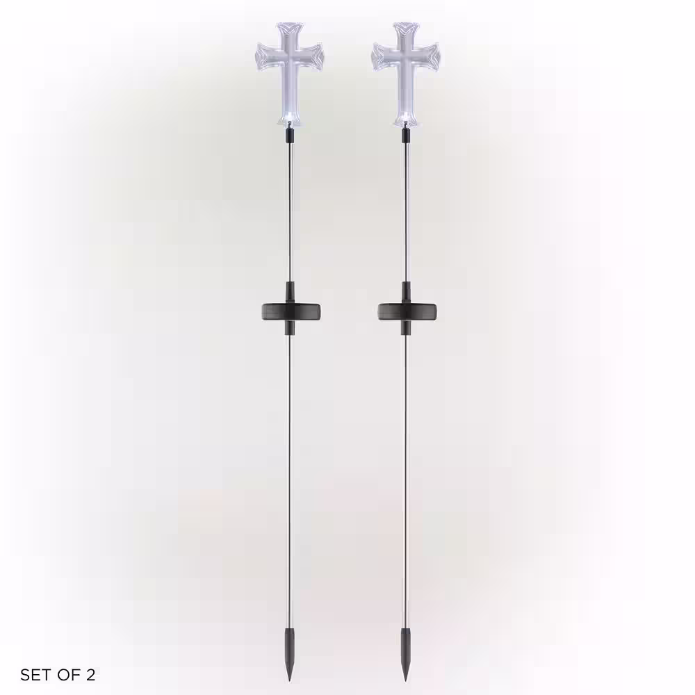 Alpine Corporation 34 in. Tall Outdoor Solar Powered Cross Clear LED Path Light Stakes (Set of 2)