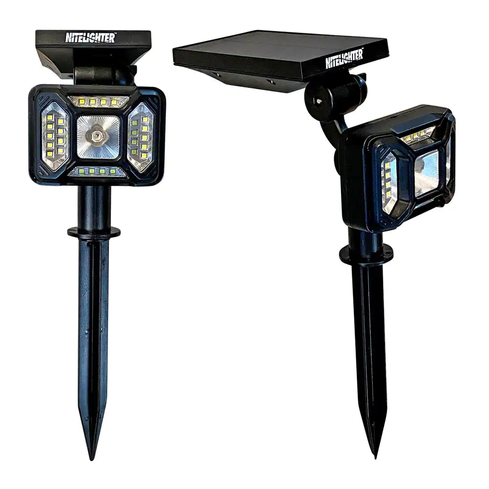 Nitelighter Solar Powered Black LED Dusk to Dawn Landscape or Path Light, Cool White (2-Pack)