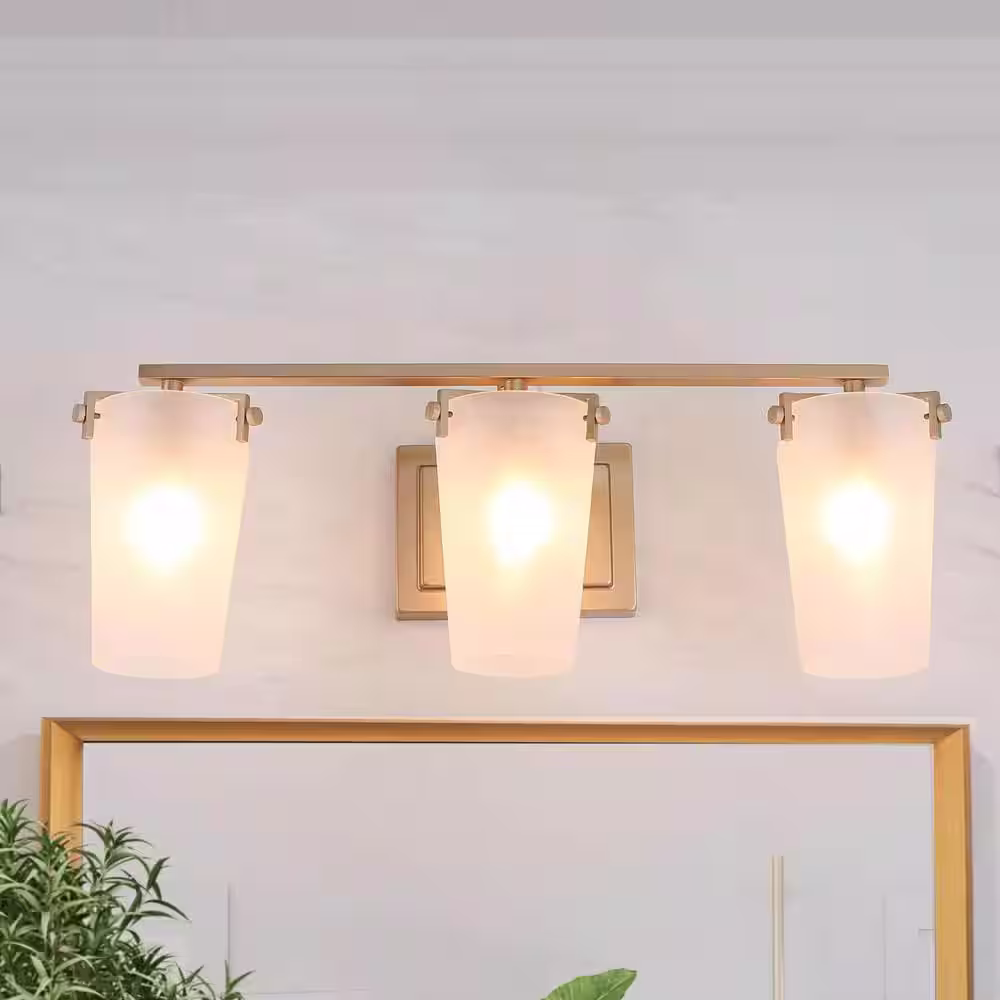 Uolfin 3-Light Farmhouse Gold Bathroom Vanity Light with Frosted Glass Shades