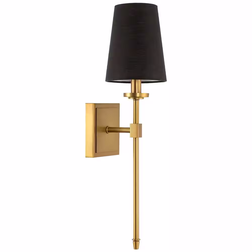 None Torche 20" 1-Light Modern Warm Brass Wall Sconce With Black Linen Shade