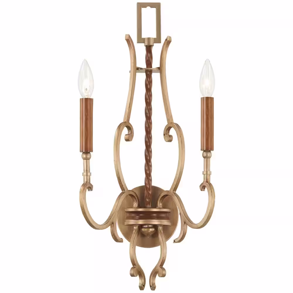 Metropolitan Magnolia Manor 2-Light Pale Gold with Distressed Bronze Wall Sconce