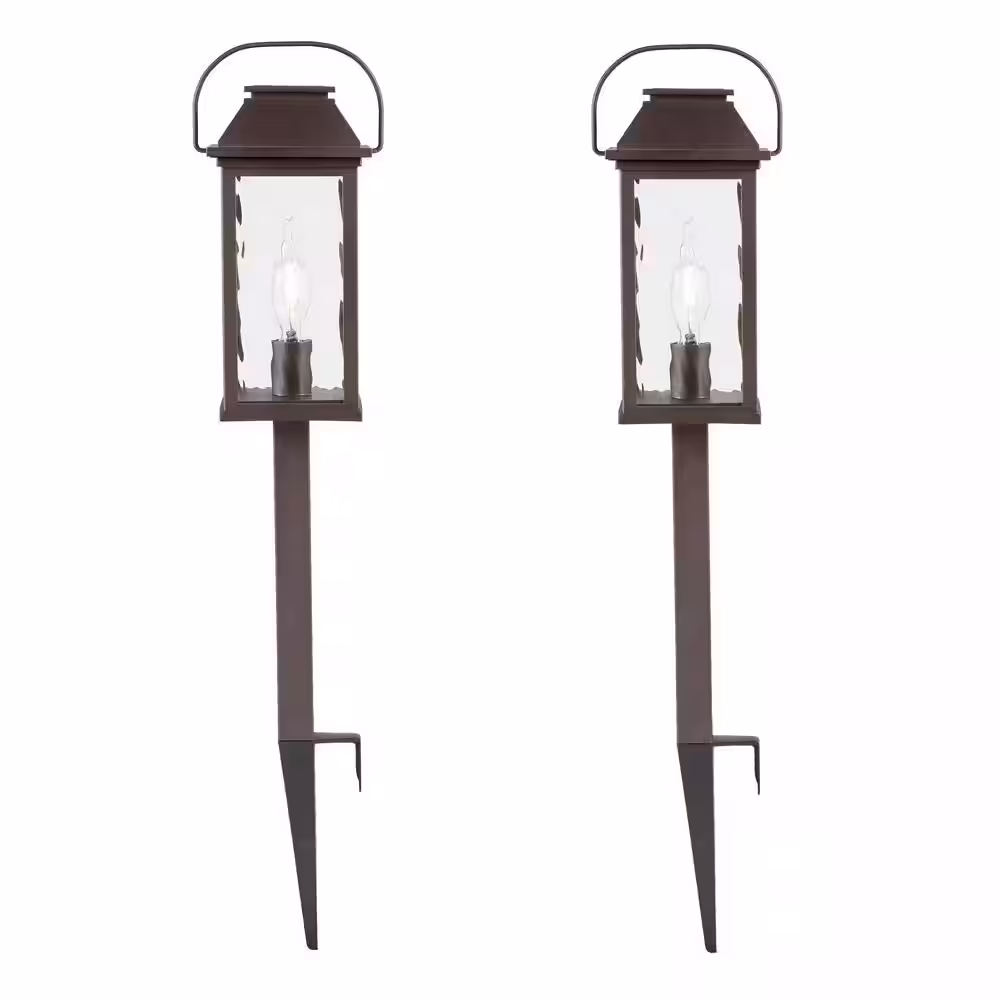 Hampton Bay Woodstock Solar Bronze LED Path Light 15 Lumens Vintage Bulb Water Glass Lens (2-Pack)