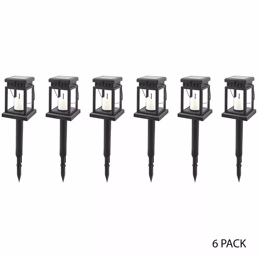 Alpine Corporation 19 in. Tall Outdoor Solar Powered Black LED Hanging or Stake Lanterns Path Light, (Set of 6)