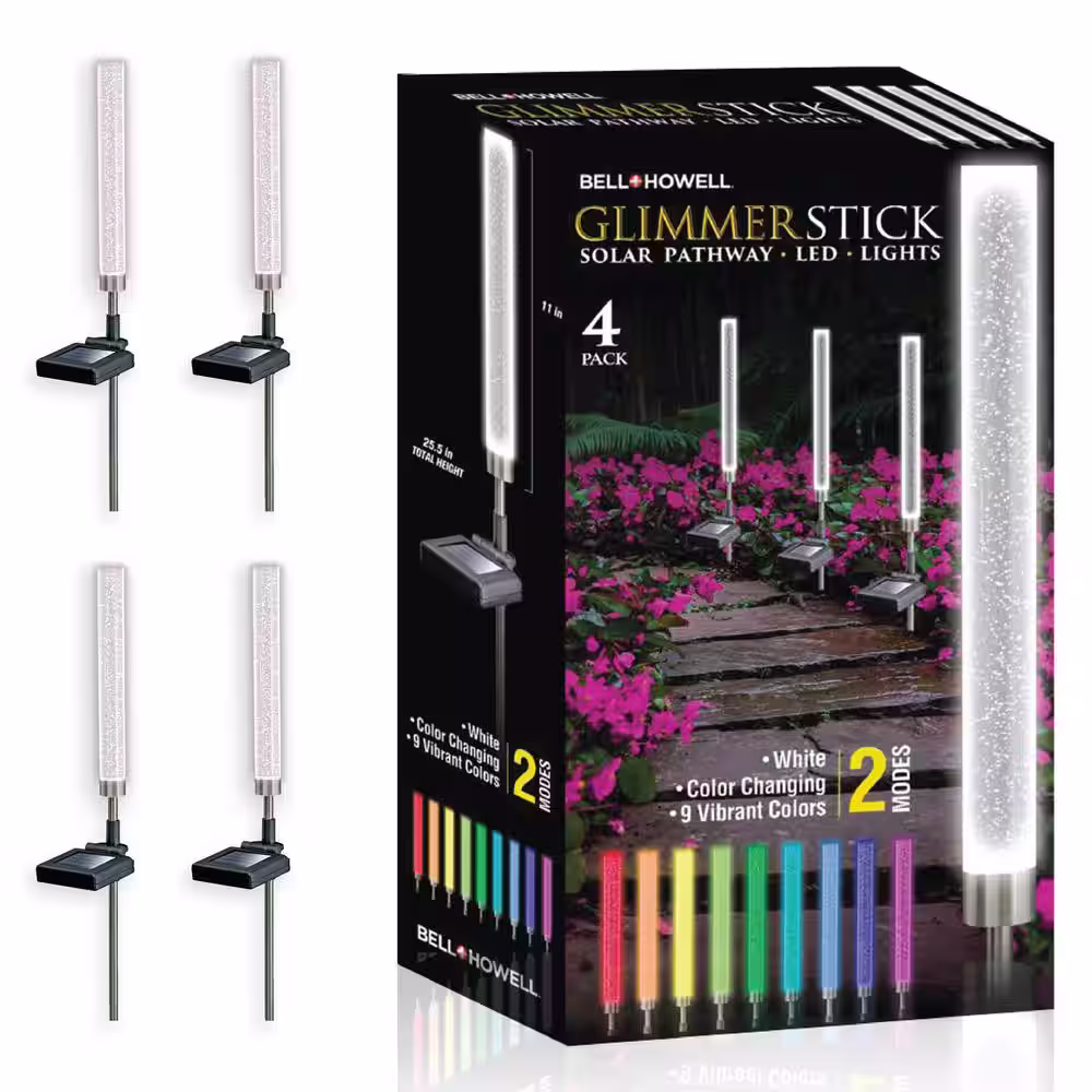 Bell + Howell Glimmer Sticks Clear Color Changing Solar Power Integrated LED Weather Resistant Acrylic Tube Path Light (4-Pack)
